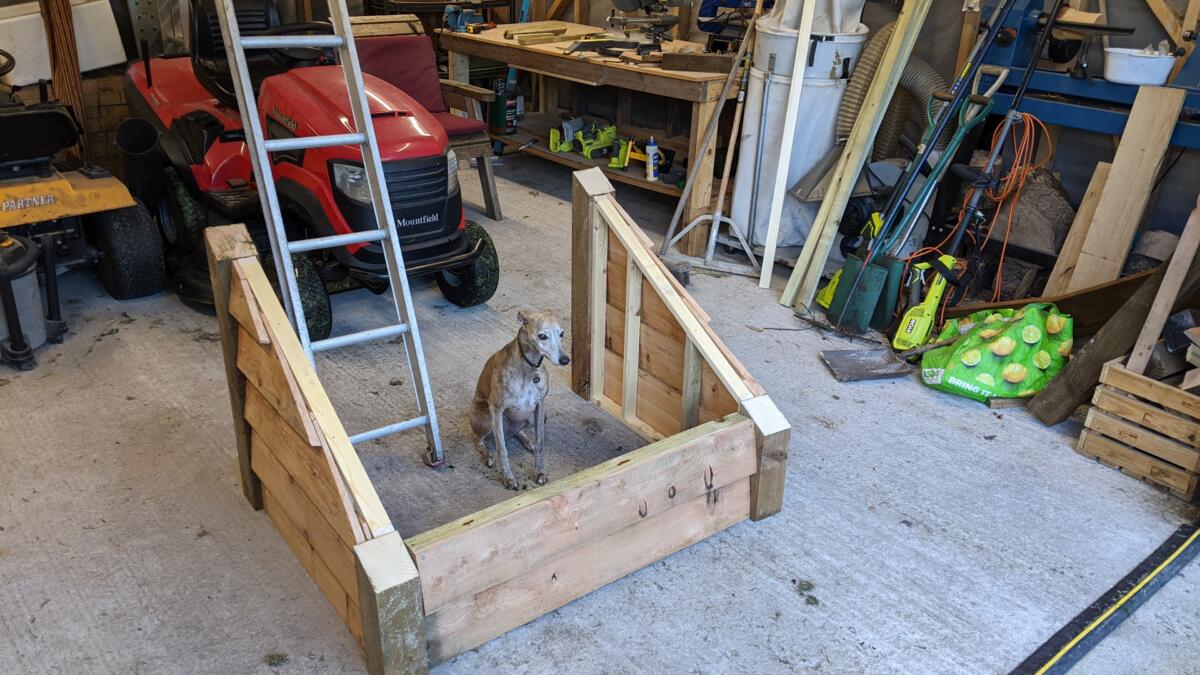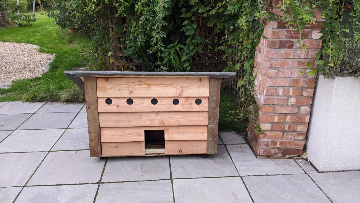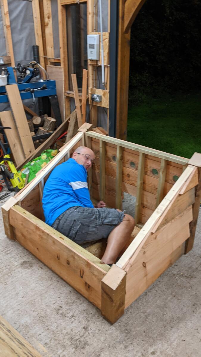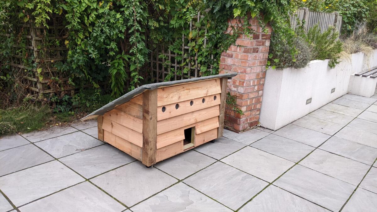 It took two of us to carry it down the garden as it weighs an absolute tonne. It’s mounted on wheels to move it around a bit. It’s not 100% finished as the roof is just resting on the top but it’s pretty heavy so will survive all but the strongest of storms. The roof covering is a bit rubbish but I’ll make improvements over time.
