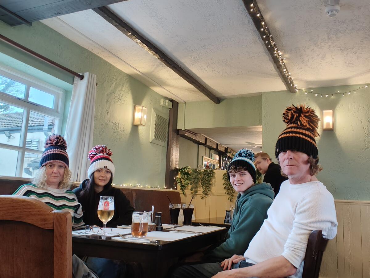 Pretty sure I’ve mentioned many times that I like a good family tradition of going to The Plough at the end of each term for food and drinks with the kids. We’ve missed it a few times because the kids have no respect, absolute zero, for the family tradition a la Darren. Anyway, this time they made it with the additional bonus of Big Bobble hats on heads