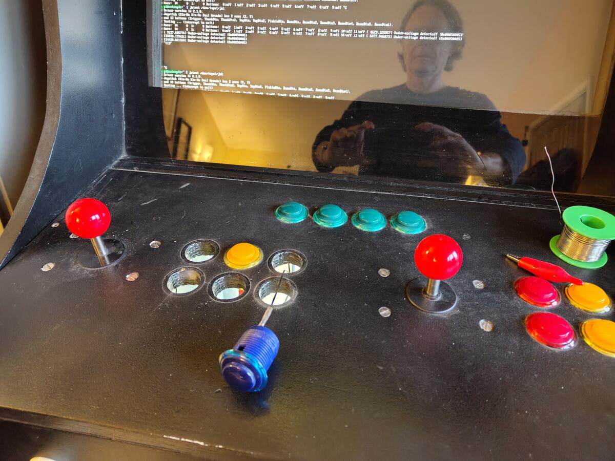 Fast forward to November 2025 and I thought to myself “must do a bit of a service on the arcade cabinet and make sure everything is working for the Tetris-off”. So I fired it up and true to form one of the buttons wasn’t working. So I opened up the cabinet and went inside. Pretty quickly found the dangling wire and reattached it. In doing so I managed to dislodge two more connections and in fixing those connections dislodge some more. I was properly pissed off. Didn’t even need the original broken button for the Tetris-off anyway.